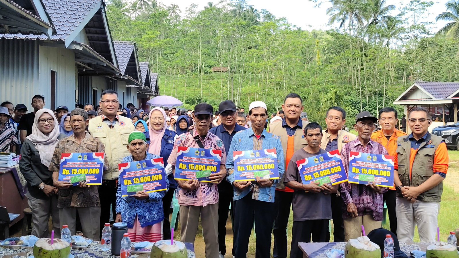 Masing-masing penerima mendapatkan bantuan sebesar Rp15 juta yang bersumber dari APBD Provinsi Jawa Tengah Tahun Anggaran 2026. Bantuan tersebut diserahkan secara simbolis oleh Bupati Banjarnegara, pejabat BNPB, Kepala Pelaksana Harian BPBD Jawa Tengah, serta Penjabat Sekda Banjarnegara.