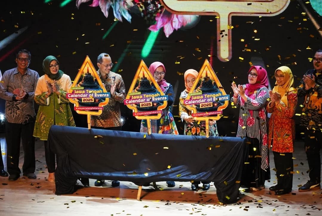 Peluncuran Jawa Tengah Calendar of Events 2025 ditandai dengan penancapan gunungan oleh Kepala Dinas Kepemudaan, Olahraga, dan Pariwisata (Disporapar) Jateng, Agung Hariyadi, bersama Plh Asisten Ekonomi dan Pembangunan, Eni Lestari, serta Ketua Komisi B DPRD Jateng, Sri Hartini.
