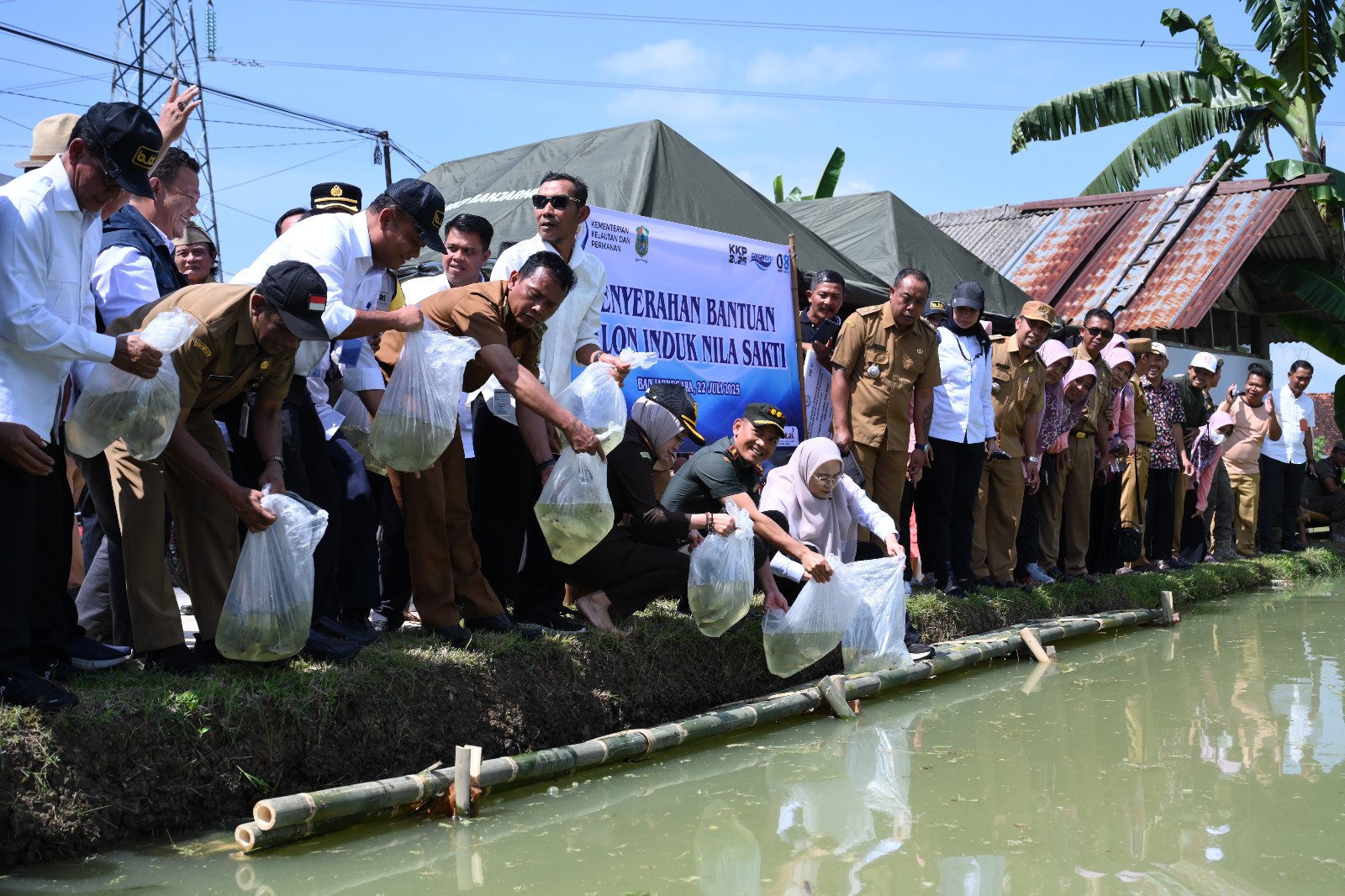 Sebagai bentuk dukungan nyata, KKP memberikan bantuan 5 paket calon induk ikan nila sakti sebanyak 2.000 ekor kepada lima kelompok pembudidaya ikan (Pokdakan), yaitu: