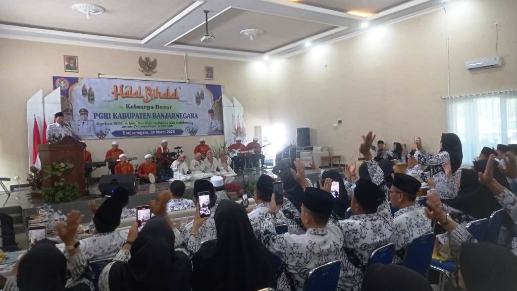 BANJARNEGARA – Suasana Halal Bihalal Keluarga Besar PGRI Banjarnegara mendadak berubah menjadi hangat dan penuh semangat saat Wakil Bupati Banjarnegara, Wakhid Jumali, memimpin lantunan sholawat di hadapan ratusan peserta, Sabtu (28/3/2026).