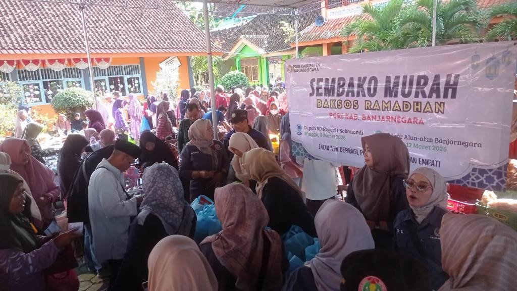 BANJARNEGARA – Lapangan upacara SD Negeri 1 Sokanandi, Banjarnegara, mendadak dipenuhi ribuan warga pada Minggu (8/3/2026) pagi. Sejak pukul 07.00 WIB, warga sudah mengantre untuk mengikuti kegiatan Pasar Murah Ramadan yang digelar oleh Kelurahan Sokanandi bekerja sama dengan berbagai instansi dan pelaku UMKM di wilayah tersebut.