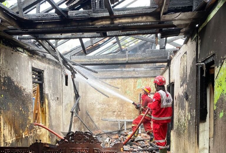 Api diduga berasal dari beban listrik yang berlebihan di dalam rumah sehingga memicu kebakaran yang dengan cepat membesar dan menghanguskan sebagian besar bangunan.