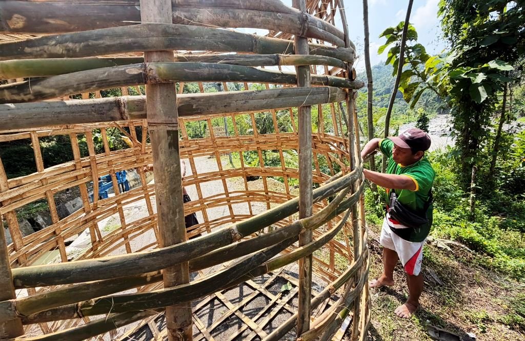 Pemandangan menarik terlihat di tepian sungai. Sejumlah warga tampak bahu-membahu mengolah bambu mulai dari meraut, membelah, hingga menganyamnya menjadi struktur besar. Aktivitas ini bukan sekadar pekerjaan biasa, melainkan tradisi turun-temurun yang terus dilestarikan.